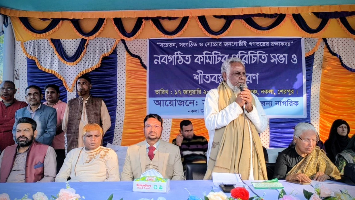 ১৭ জানুয়ারি শুক্রবার বিকেলে এ উপলক্ষে নকলা পৌর শহরের মুক্ত মঞ্চে নতুন কমিটির পরিচিতি সভা ও শীতবস্ত্র বিতরণ করা হয়েছে।
